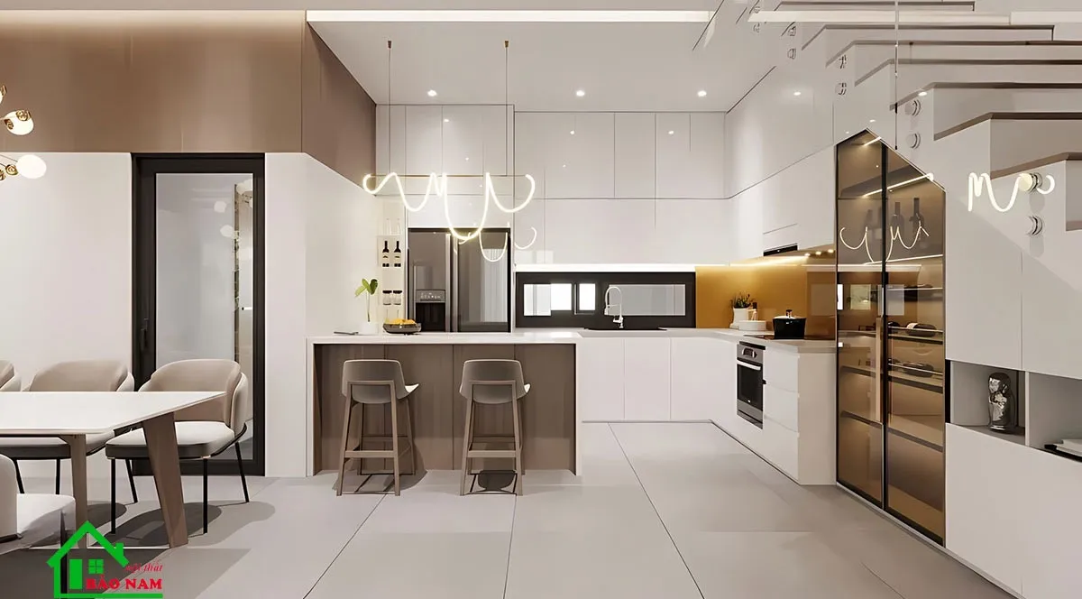 Thả hồn vào mẫu phòng bếp đẹp theo phong cách Tối Giản, nơi sự đơn giản và tinh tế gợi lên cảm giác thư thái và sự cân bằng trong không gian nấu nướng.