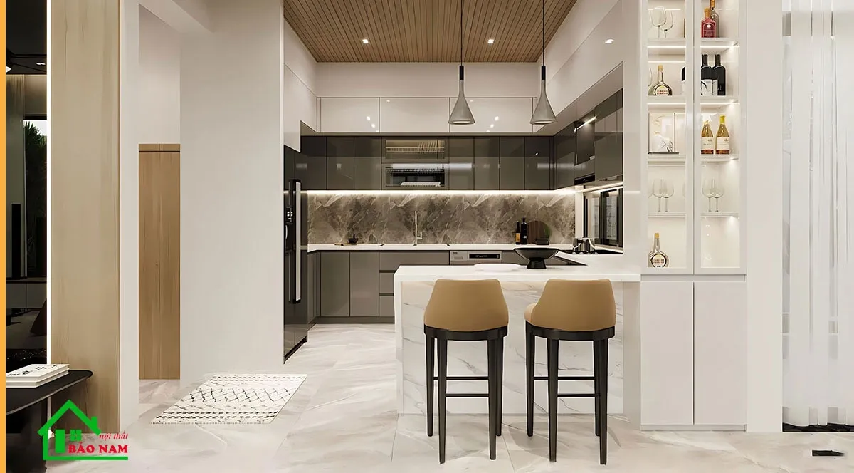 Hòa mình vào mẫu tủ bếp đẹp sang trọng dành cho biệt thự, nơi sự tinh tế và sự xa hoa hòa quyện trong không gian nấu nướng đẳng cấp và đáng mơ ước của một căn biệt thự cao cấp.