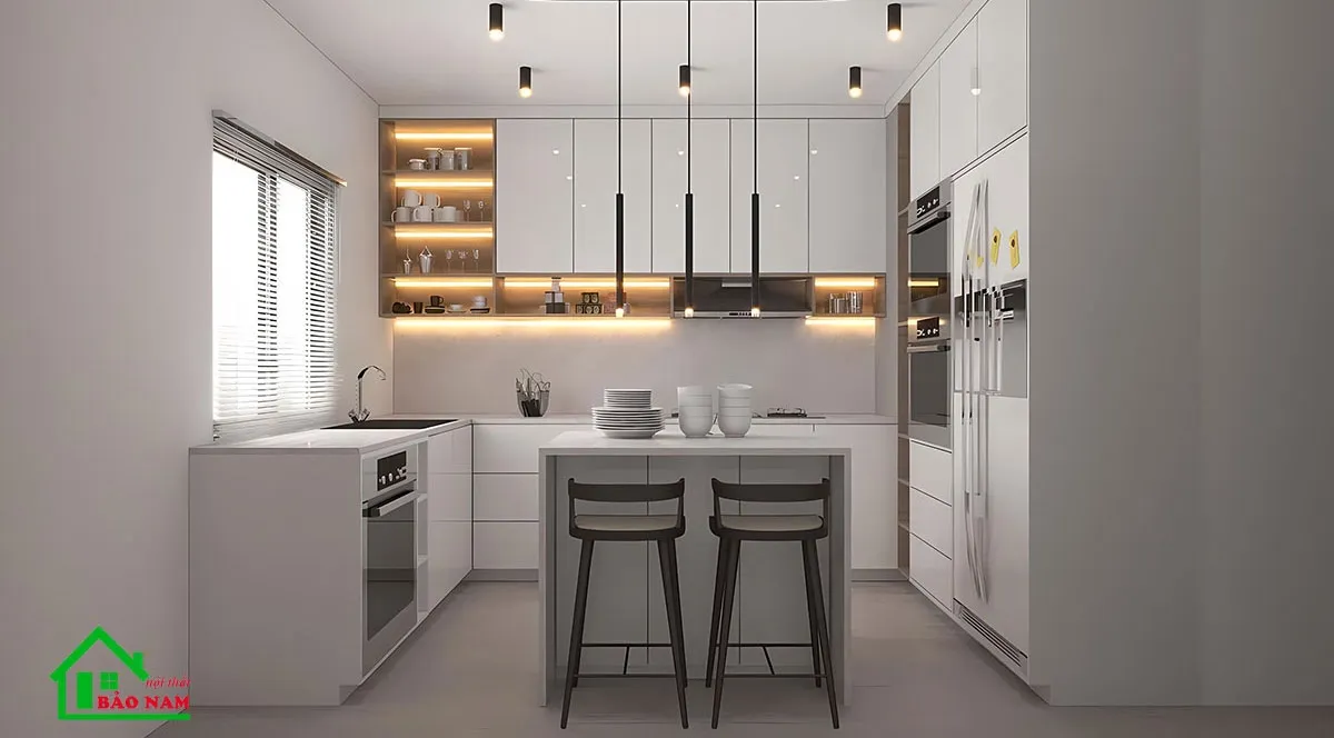 Sử dụng gam màu trắng hoặc các tông màu nhạt để làm chủ đạo trong thiết kế bếp. Gam màu này tạo ra một cảm giác rộng rãi, tươi mới và tăng cường ánh sáng trong không gian.