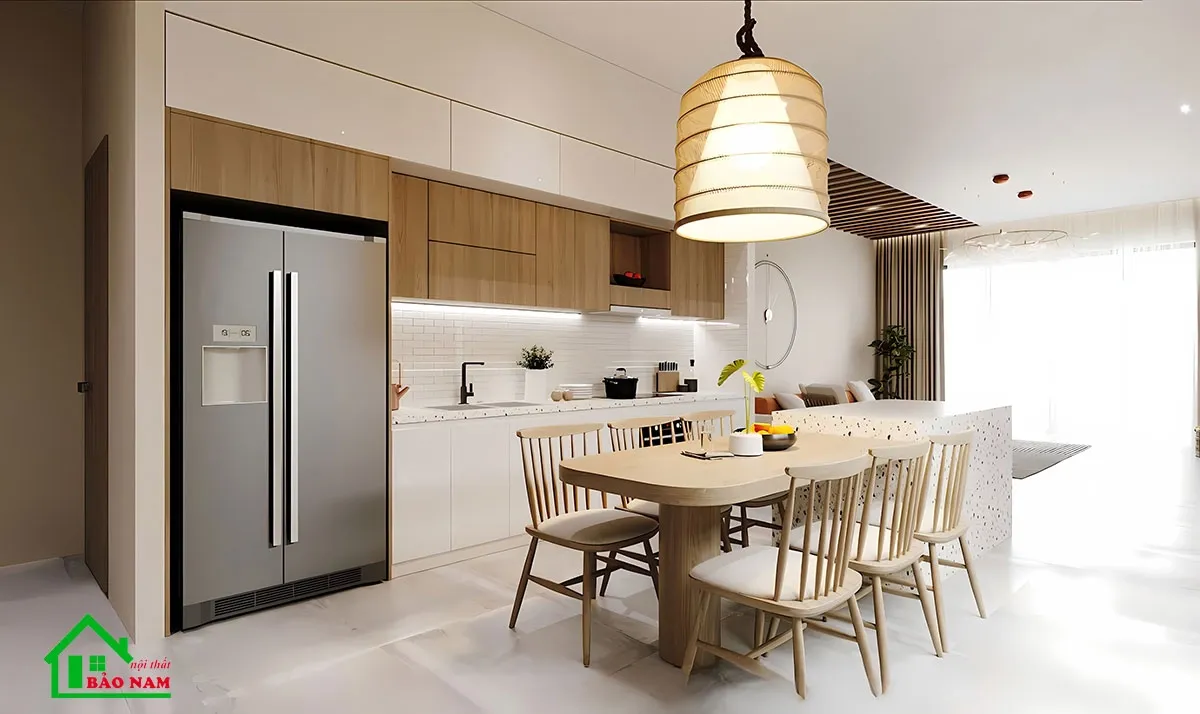 Nếu không gian cho phép, xem xét việc loại bỏ vách ngăn giữa phòng bếp và phòng khách để tạo ra một không gian mở rộng. Điều này sẽ tạo cảm giác thông thoáng hơn và tăng khả năng giao tiếp giữa các thành viên trong gia đình.