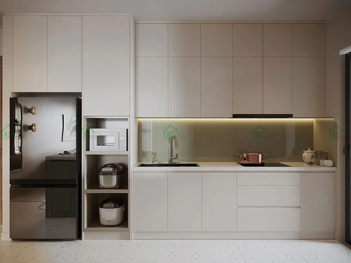 | Tủ bếp MDF chống ẩm Melamine | 2.8 – 3.2 triệu/m dài |