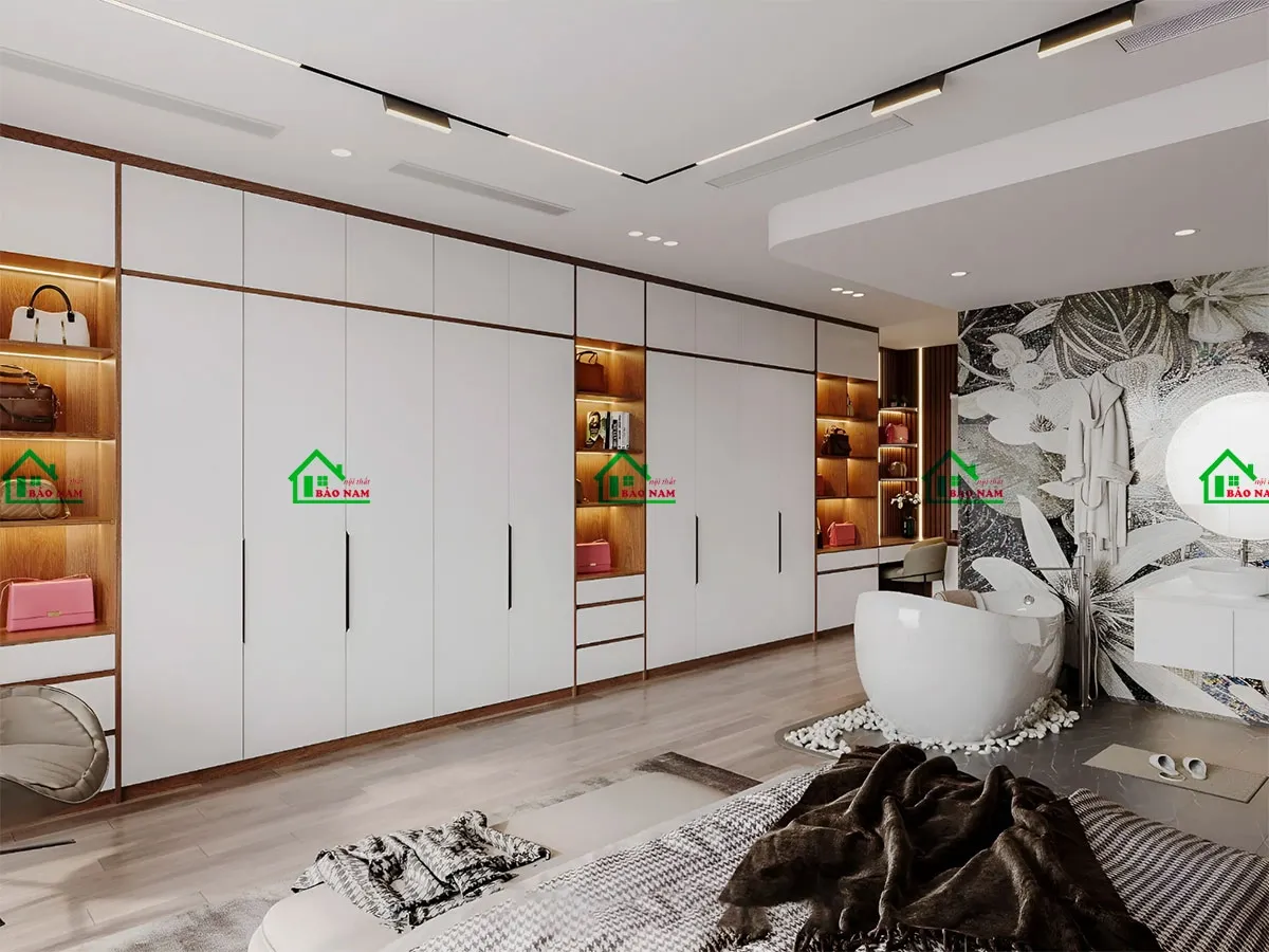 Trong không gian nội thất phòng ngủ, không gian tủ quần áo gỗ đóng vai trò vô cùng quan trọng và không thể thiếu trong bất kỳ ngôi nhà nào. Đa dạng về thiết kế, chất liệu và chức năng, tủ quần áo gỗ không chỉ đơn thuần là nơi để sắp xếp đồ đạc một cách khoa học, mà còn là một điểm nhấn độc đáo tạo nên sự sang trọng và tinh tế cho căn phòng. Bạn đang tìm kiếm những mẫu tủ quần áo đẹp hiện đại, đáp ứng xu hướng thịnh hành năm 2025? Đừng lo lắng, bài viết này của nội thất Bảo Nam sẽ đồng hành cùng bạn khám phá những mẫu tủ quần áo tuyệt đẹp, mang phong cách hiện đại và đẳng cấp. Từ sự kết hợp tinh tế giữa gỗ tự nhiên và các vật liệu hiện đại, đến những thiết kế thông minh và tiện ích, bạn sẽ tìm thấy những lựa chọn vượt xa mong đợi của mình.