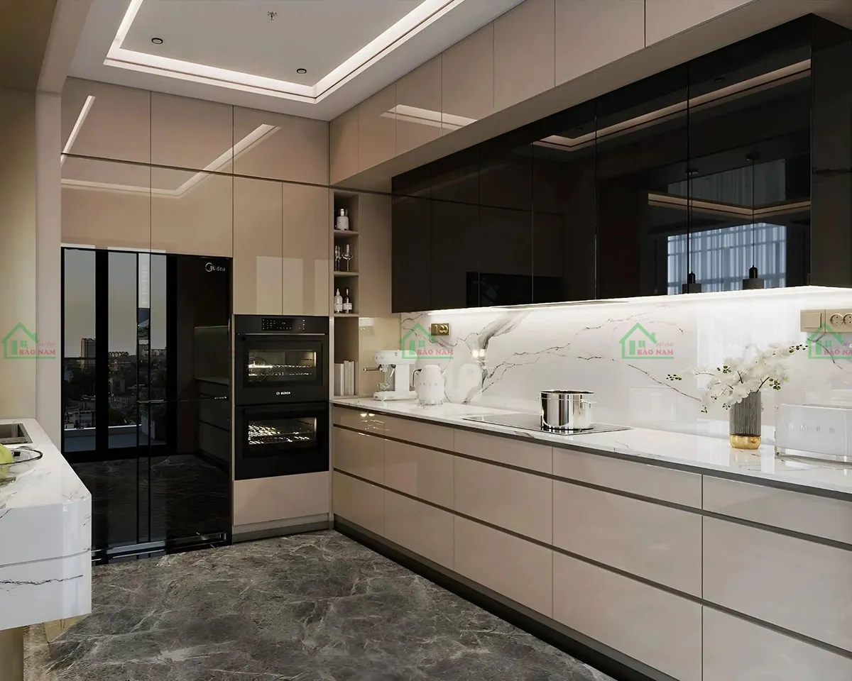 Với khả năng dễ dàng vệ sinh, mẫu tủ này giúp bạn tiết kiệm thời gian và công sức trong việc chăm sóc không gian nấu nướng. Sự kết hợp hoàn hảo giữa tính năng và thẩm mỹ, tủ bếp bóng gương acrylic không chỉ là nơi lưu trữ mà còn là điểm nhấn đầy phong cách, tạo nên không gian bếp lý tưởng cho gia đình bạn.
