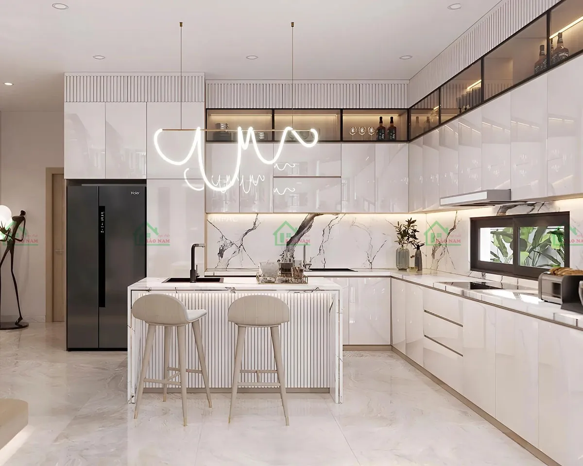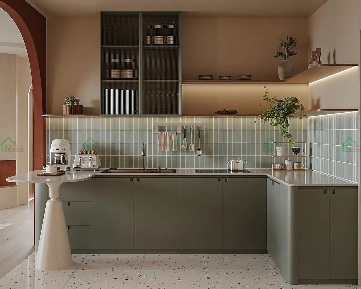 Ngoài ra, các kệ mở không chỉ mang lại tính tiện dụng mà còn tạo cơ hội để bạn trang trí thêm cây xanh hoặc các món đồ decor yêu thích, làm cho không gian bếp trở nên sinh động và ấn tượng. Với tủ bếp đa năng, bạn không chỉ sở hữu một không gian bếp gọn gàng mà còn thể hiện phong cách sống hiện đại và tinh tế của mình!