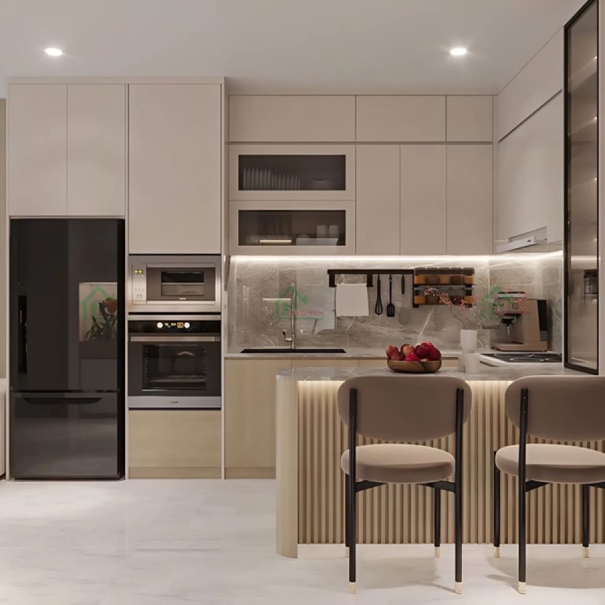 - Bố cục không gian mở, kết hợp quầy bar nhỏ gọn: Tối ưu hóa diện tích, lý tưởng cho căn hộ hoặc nhà phố hiện đại.