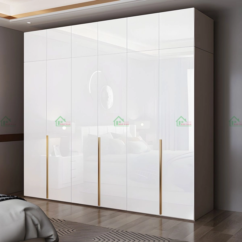 Được thi công từ các vật liệu cao cấp như acrylic bóng gương cho cánh tủ, mẫu tủ này tạo điểm nhấn ấn tượng trong không gian phòng ngủ. Thiết kế tối giản, hiện đại cùng những đường nét tinh tế mang lại cảm giác sang trọng, tinh tế, đồng thời vẫn đảm bảo tính thực dụng và tối ưu hóa không gian lưu trữ.